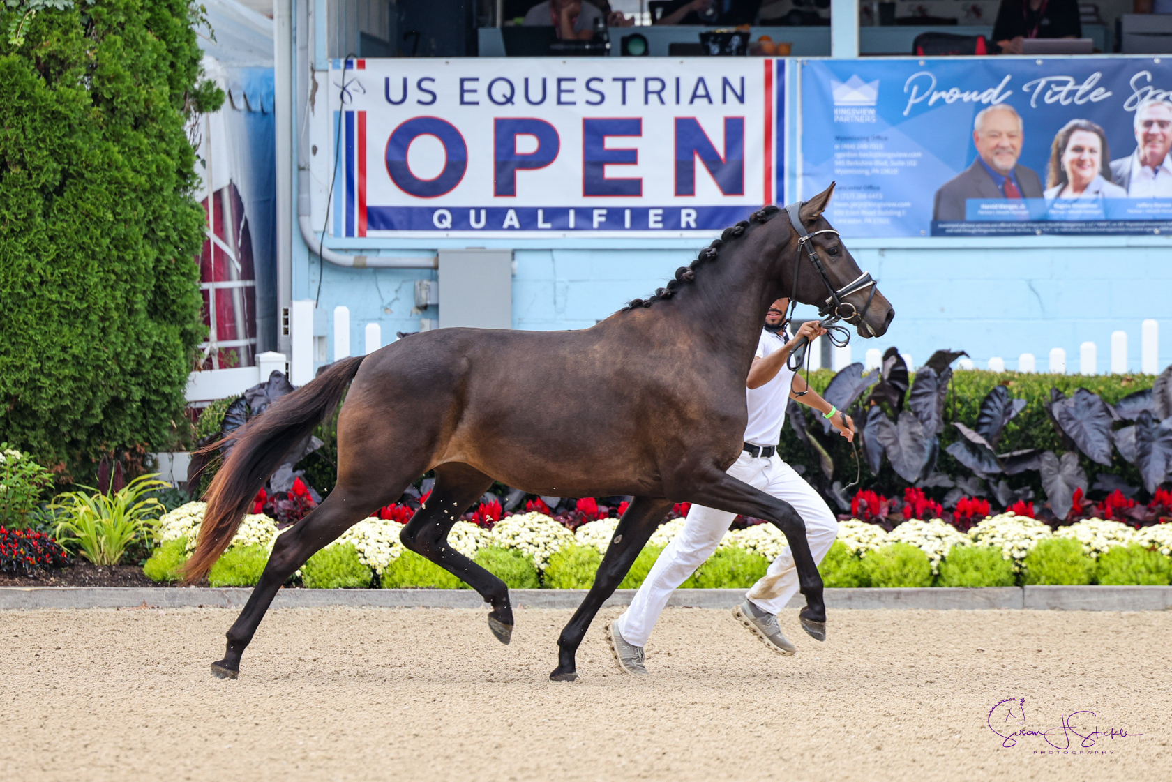 A gorgeous tall, elite filly daughter from Premium Mare Royal Temptation and SPS / Elite grandmother Royal Coeur. She is sired by Iron so very happy to have a filly and look forward to her growing up! Scores over 80% and very high placings at Devon.